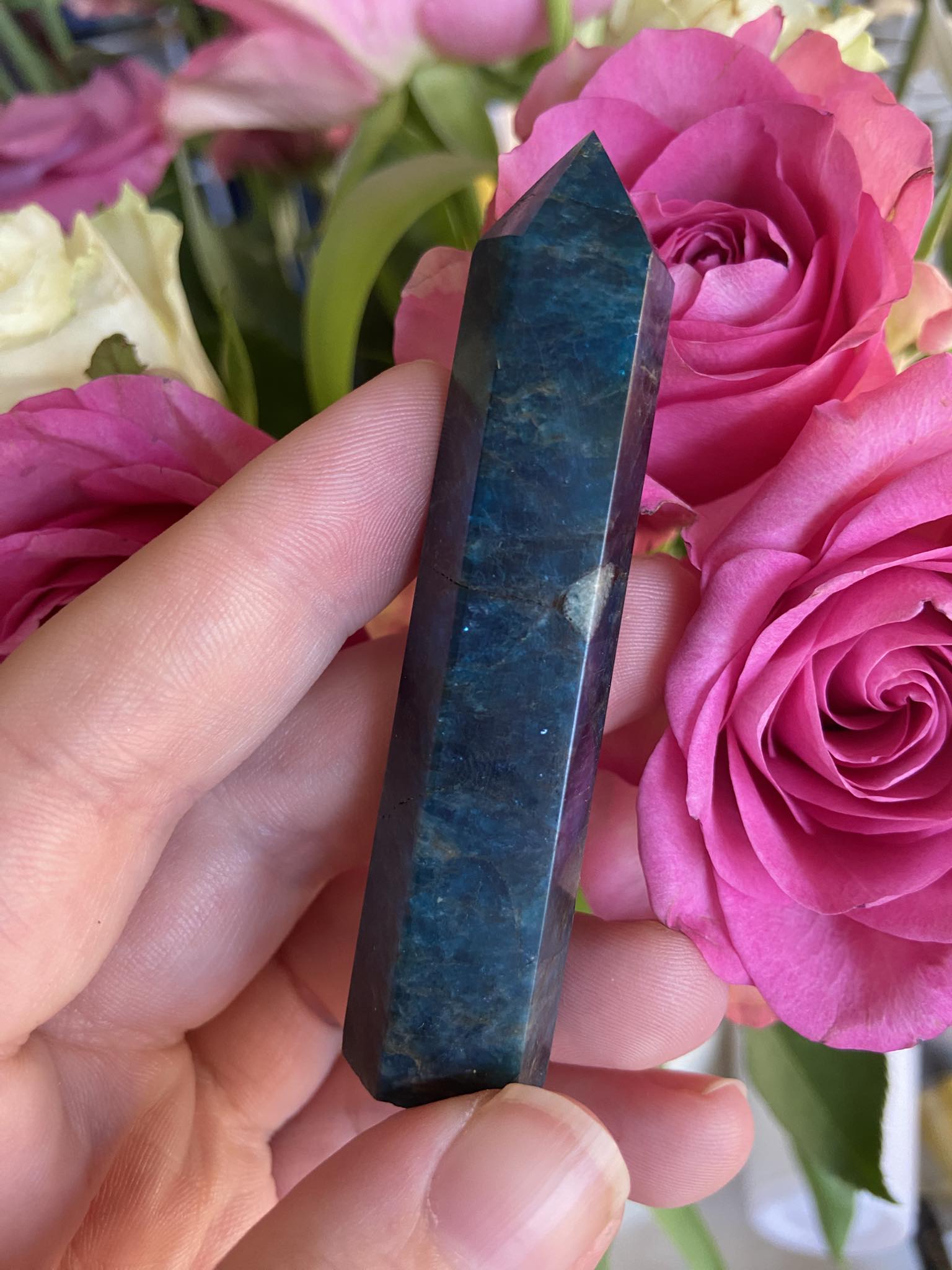 Ignite your inner fire and express your truth with this striking Blue Apatite Tower. Known for its brilliant blue hues, Blue Apatite enhances motivation, clear communication, and spiritual awareness—perfect for unlocking your potential.